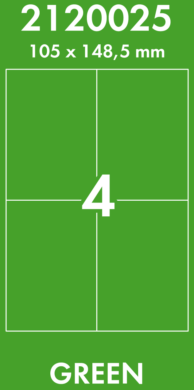 Наклейки цветные 105*148,5 мм, цвет: зеленый, 4 этикетки на листе, 1650 листов, Lomond 2120025ТЕХ